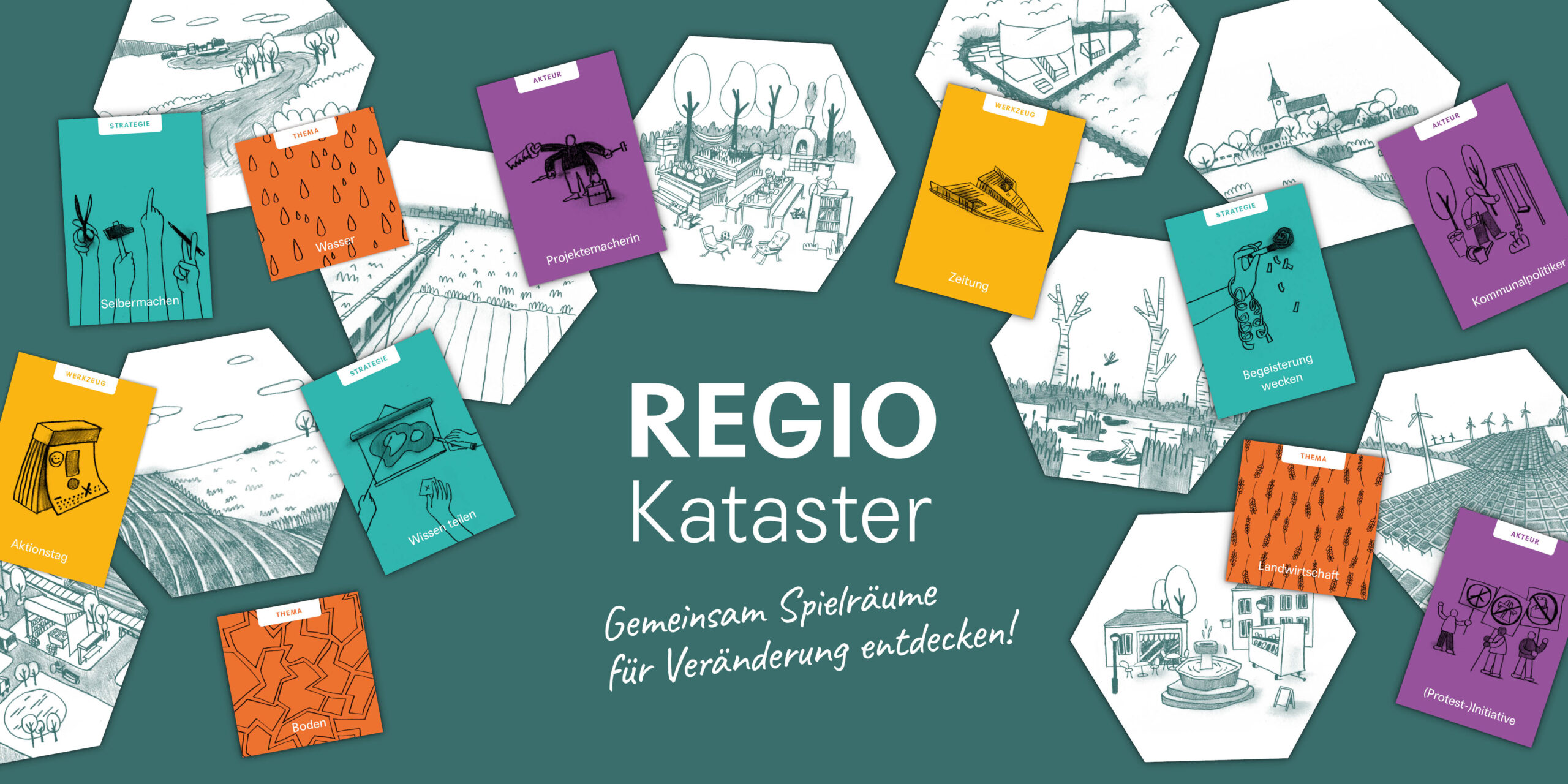 Das REGIO Kataster ist ein Kartenspiel für alle, die ihre Region, ihre Stadt oder ihr Dorf aktiv mitgestalten wollen. Dabei steht der gemeinsame Weg im Mittelpunkt: Zusammen nachzudenken, zu diskutieren und zu planen stärkt das Verständnis für den Ort oder die Region und schafft Grundlagen für kollektives Handeln.